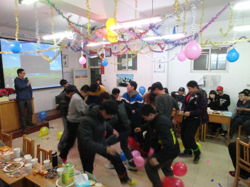 2015年1月1日晚上6点整,13、14级机电实验班元旦联欢晚会在10409Z举行,参加此次联欢晚会的有:13级机电实验班班主任安晓红老师,13级机电实验班导员姜升学长,14级机电实验班导员李群学长以及13、14级实验班全体学生。