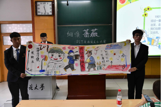 本次DIY作品及画报的制作由大一和大二全体心理委员组织全班同学参与其中,利用课余时间,将在生活中发现的美好和温馨与朋友、同学一起分享,并制作成作品,前后经历了45天时间。入围决赛的各个班级作品惊艳全场,获得了大家的掌声和欢呼。作品中有全班每个宿舍完成一幅的画报最终组合成的“奋斗”故事;也有长达3米的手绘画卷,展示了五四运动、新中国成立历程以及当代青年作为;还有“向坏情绪开炮”“心语信箱”等别出心裁的作品。可以看出,各班同学都积极主动参与了制作过程,各个作品的类型和主题多种多样且内涵丰富,这样的制作过程为他们留下了一次深刻且温暖的回忆。