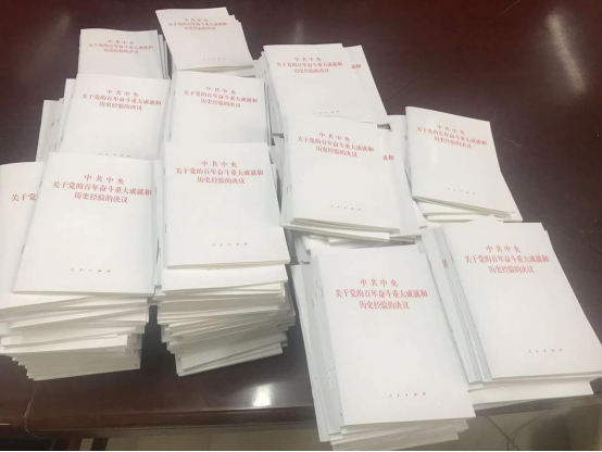 会前,为了让全院党员更加认真学习十九届六中全会精神,学院党委购买《中共中央关于党的百年奋斗重大成就和历史经验的决议》430本,已通过支部发放到各位党员。