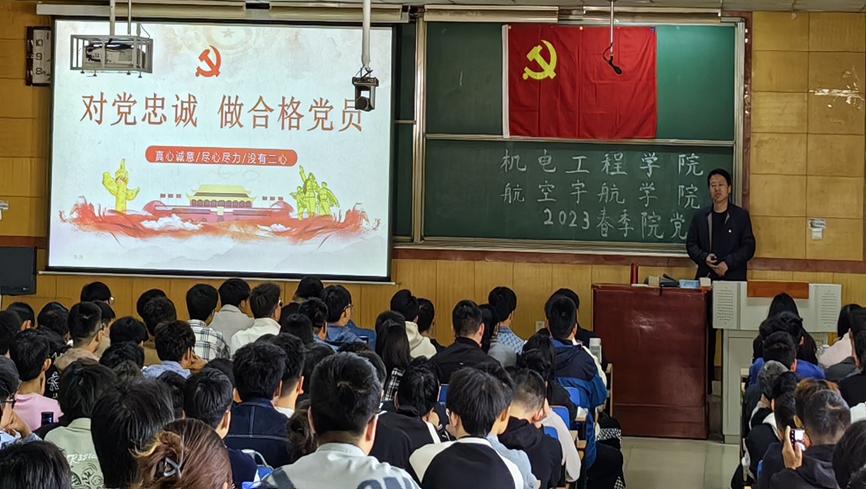 、航空宇航学院党委书记罗建国老师讲授,罗书记从“历史角度看对党忠诚、如何做到对党忠诚和新时代共产党员面临新考验”等三个方面进行阐述,要求大家提升政治素养,增强国之大者观念,锻炼斗争精神,练就过硬本领,用实际行动证明入党积极分子的对党忠诚的坚定信念。