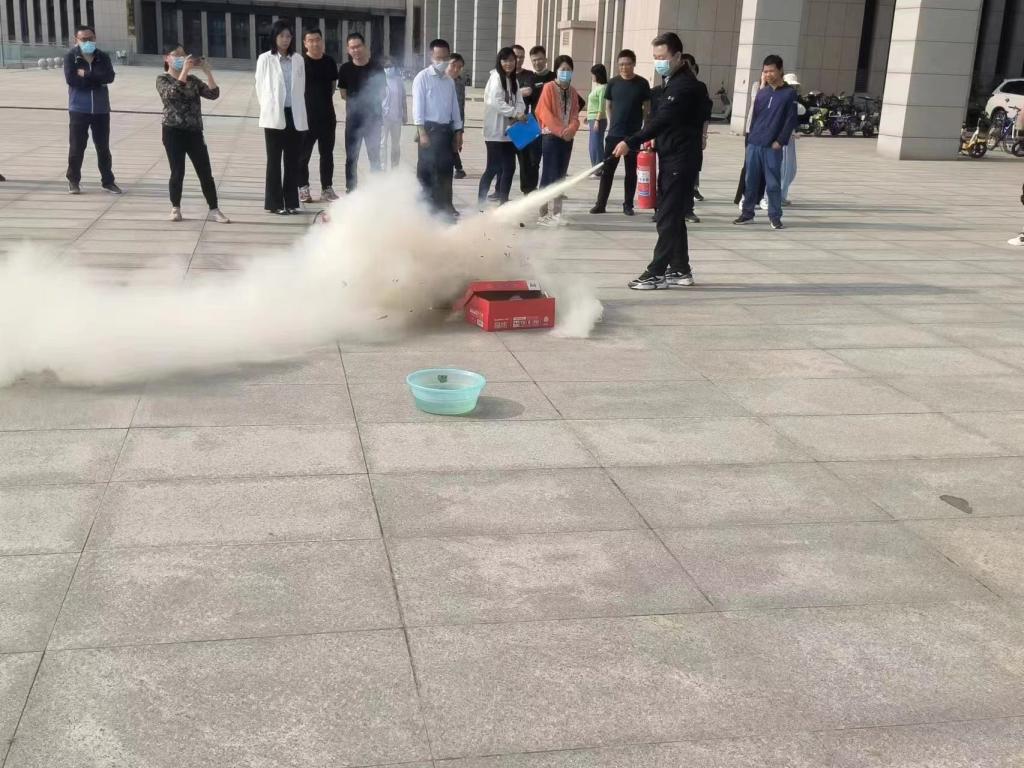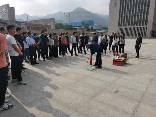 演练开始后,楼内师生有序撤出到科学楼西侧平台;然后史科长对消防安全知识进行了细致讲解,特别强调电动车不能在楼里充电,因为电动车一旦燃烧起来,毒烟会迅速向上蔓延,很快就能导致整幢楼陷入毒烟密布的状态,造成人员伤亡甚至群死群伤的火灾事故;接着史科长为师生们讲解了灭火器的正确使用方法和注意事项,并对灭火器的使用进行示范,随后大家亲自体验了现场灭火。整个消防灭火演练过程井然有序,有条不紊。