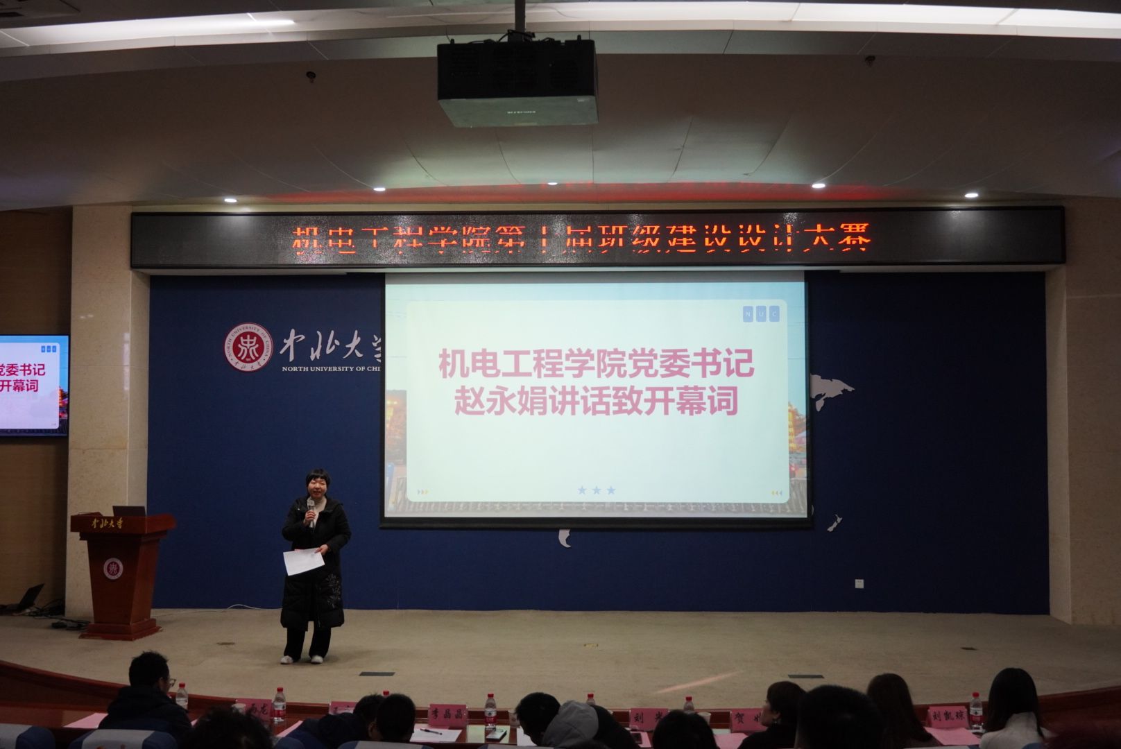 大赛在庄严的国歌声中如期举行。院党委书记赵永娟致开幕词,她从个人经历谈到对军工的热爱与情怀;从瑾瑜国际会议中心的由来,引出优秀校友对母校的情怀,希望大家学成归来,共建机电;她强调,中文a片