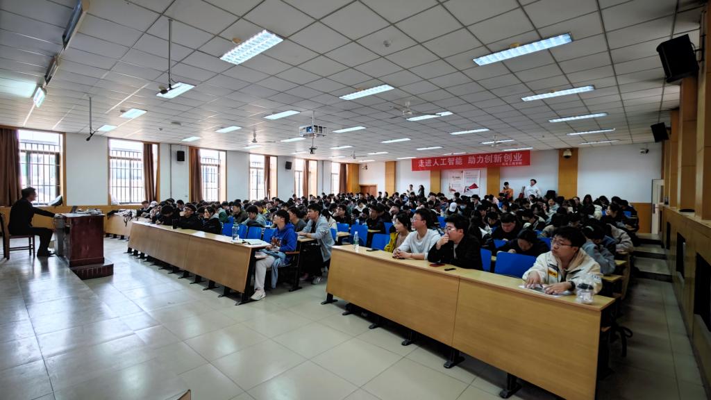 研究生会和院科协共同主办,来自8个学院的本科生、研究生200余人参加。学院结合山西玖捌伍科技有限公司的校园公益行活动,邀请AIGC商业应用高级咨询师、AI智能体工程师董艳伟等进行人工智能应用的经验分享。