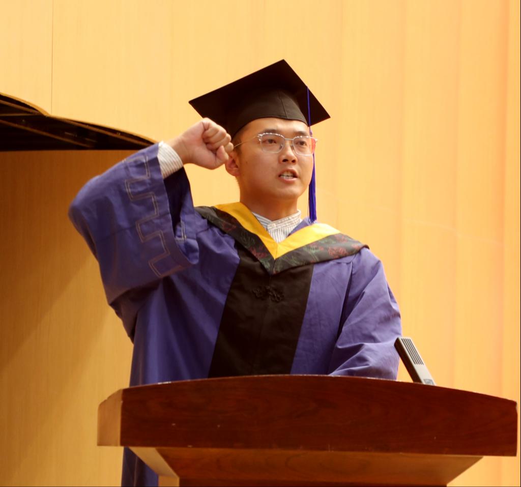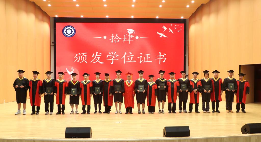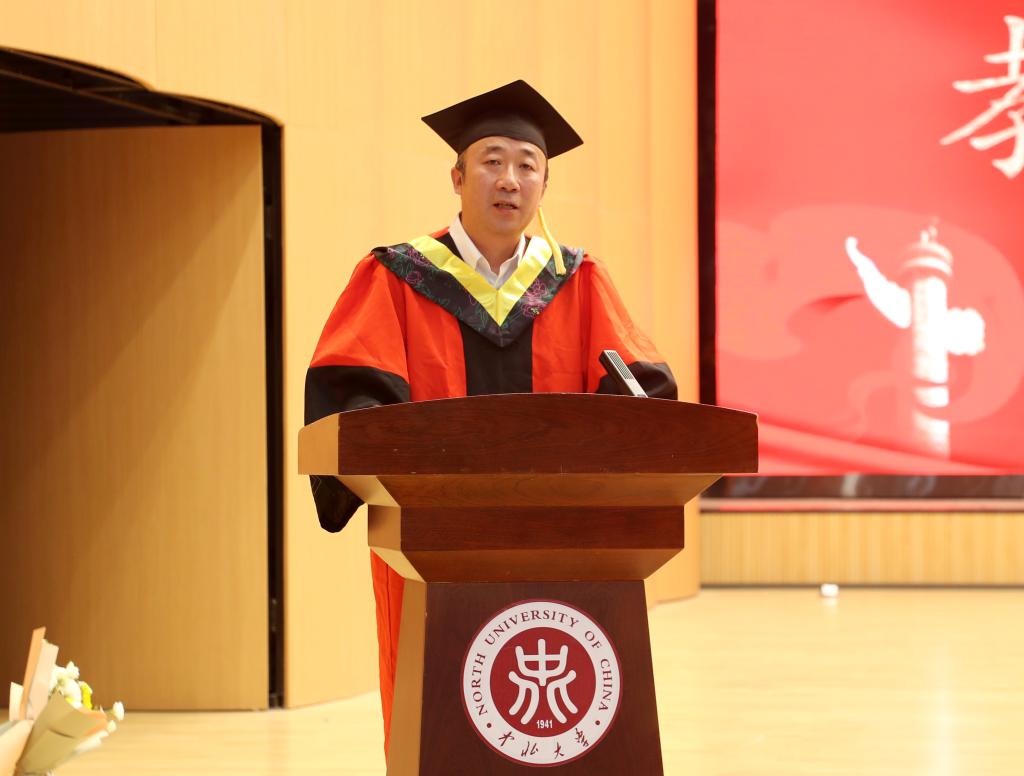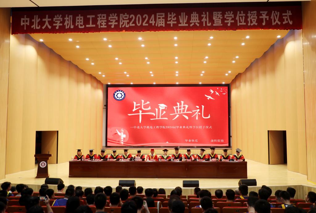 毕业班班主任送上毕业寄语,祝2024届毕业生毕业快乐,前程似锦。本硕博毕业生代表胡永亮、龙玥颖、范宏辉、乔炳旭依次发言,他们表示必定不负众望,心怀国家,回报社会,传承中北机电人的精神,砥砺前行。在校生代表张婧为学长学姐送上浓浓问候和满满祝福。2024届博士毕业生林松和周东龙向学院捐赠纪念品,表达对学院培养的感恩之情,之后,全体2024届毕业生在贺泽仁领誓下庄严宣誓。