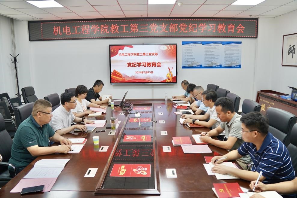 教工第三党支部党纪学习教育成果,并进一步对党纪学习提出四点要求:一是深刻认识党纪学习教育的重要性,做到学纪、知纪、明纪、守纪,常学常新、常悟常进、常践常得,通过学习进一步强化工作作风;二是要学以致用,将学院的发展放到首位,将党纪学习教育和推动兵器学高质量发展紧密结合,不断提升人才培养质量、科研水平、学生升学率以及社会服务能力,产出标志性成果;三是要思考怎样服务山西,思考新兴产业和未来产业怎样布局;四是要解放思想,打破固有的思维方式,主动求变,主动谋划,增强服务意识,统一思想,做好兵器学科的建设,为学校冲击“双一流”做出新的更大贡献。