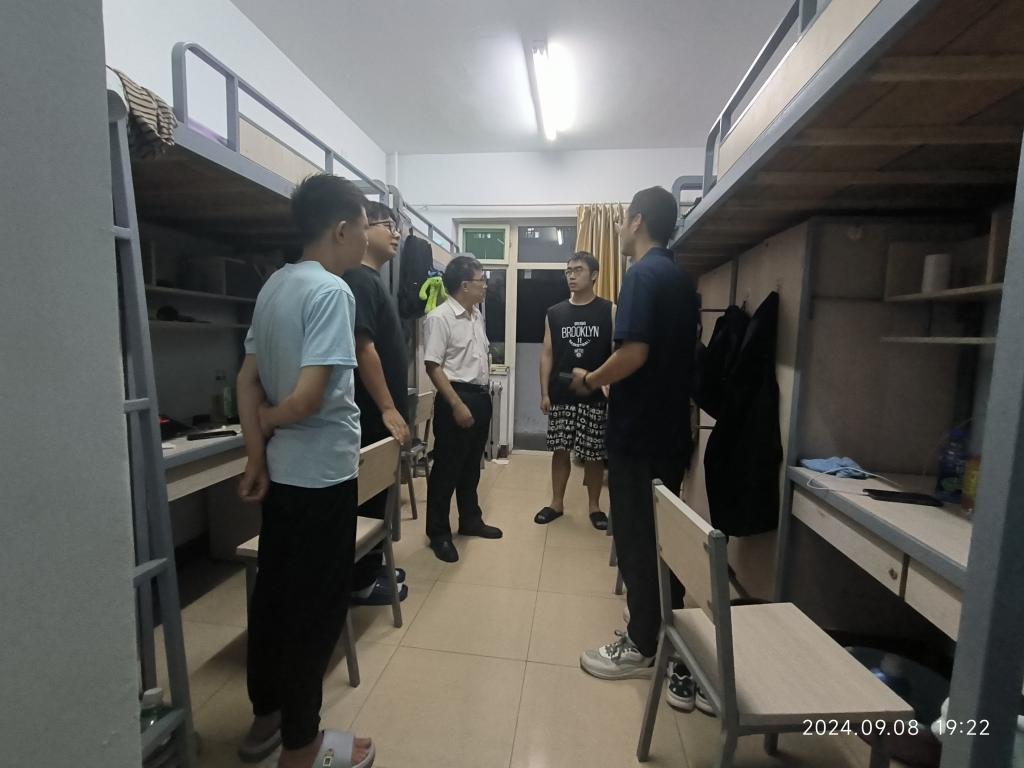 2024级迎新工作在紧张有序的工作氛围中顺利完成。下午7时,院党委书记赵永娟、院党委副书记刘光、副院长李世中分别带领2024级新生班主任深入新生宿舍走访慰问,与学生面对面交流,了解学生需求,送上真诚的关怀与暖心的问候。