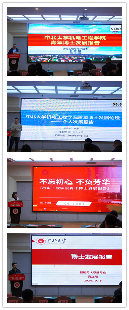 在中北酒店学术报告厅举办了青年博士发展论坛。论坛邀请人力资源部部长王俊元教授、科学技术研究院院长丑修建教授、南京理工大学优青韦辉亮教授以及山西省教学名师张吉堂教授出席,学院全体院领导、各系系主任、专业负责人、各科室科长以及40岁以下青年博士参加。