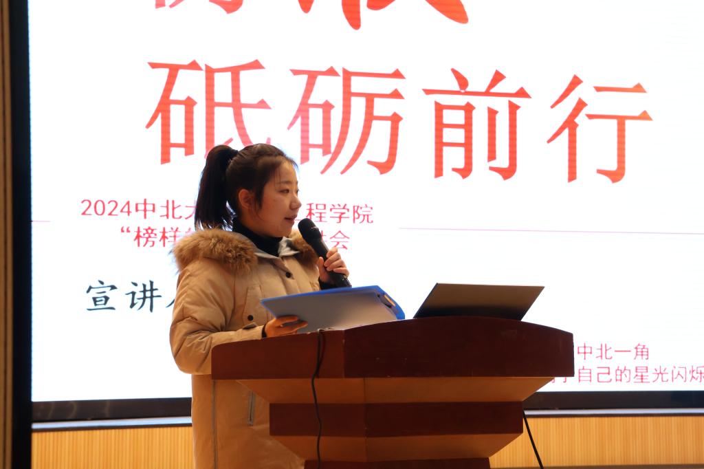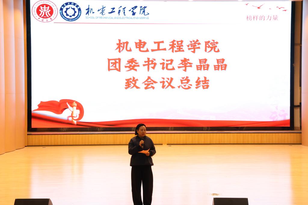 团委书记李晶晶总结,她指出本次榜样的力量宣讲会意义深远,通过各位优秀学生代表的亲身讲述,深切感受到他们在追求梦想、砥砺前行的过程中坚定的信念与不懈的努力。同时也希望同学们能以此次宣讲会为契机将榜样的精神内化于心、外化于行,在青春的赛道上奋力奔跑,书写自己的辉煌篇章,为学院增光添彩。