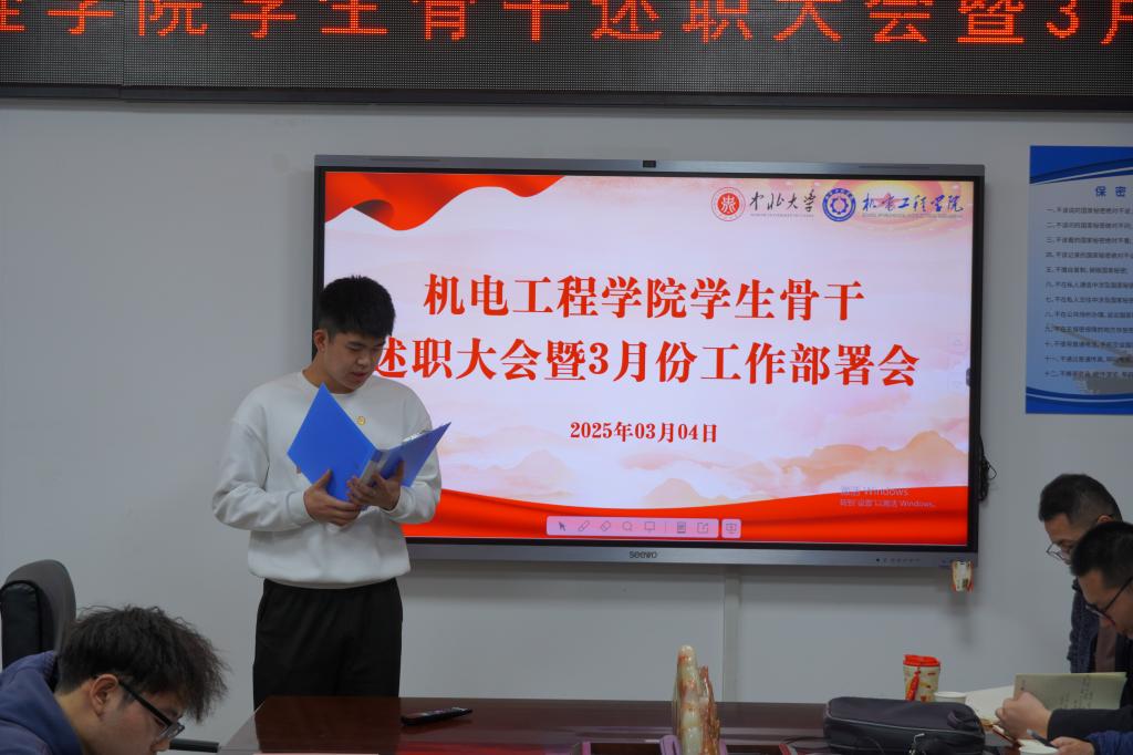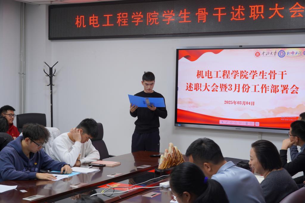于科学楼A座313会议室召开学生骨干述职大会暨3月份工作部署会。院党委副书记刘光、院团委书记李晶晶以及全体辅导员老师出席会议,学院部长级以上全体学生骨干参加会议。