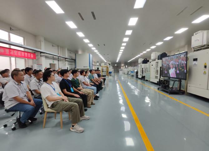 与此同时,部分师生党员应企业特别邀请,前往机械厂党员活动中心,与机械厂全体党员共同观看阅兵盛况。当庄严的国歌声响起,全体党员起立致敬;在装备方队接受检阅时,看到我国自主研制的新型国防装备驶过长安街,这些现在和未来兵工领域的生力军不禁屏息凝神——他们比任何人都更懂得这些钢铁巨兽背后蕴含的技术突破与战略意义。