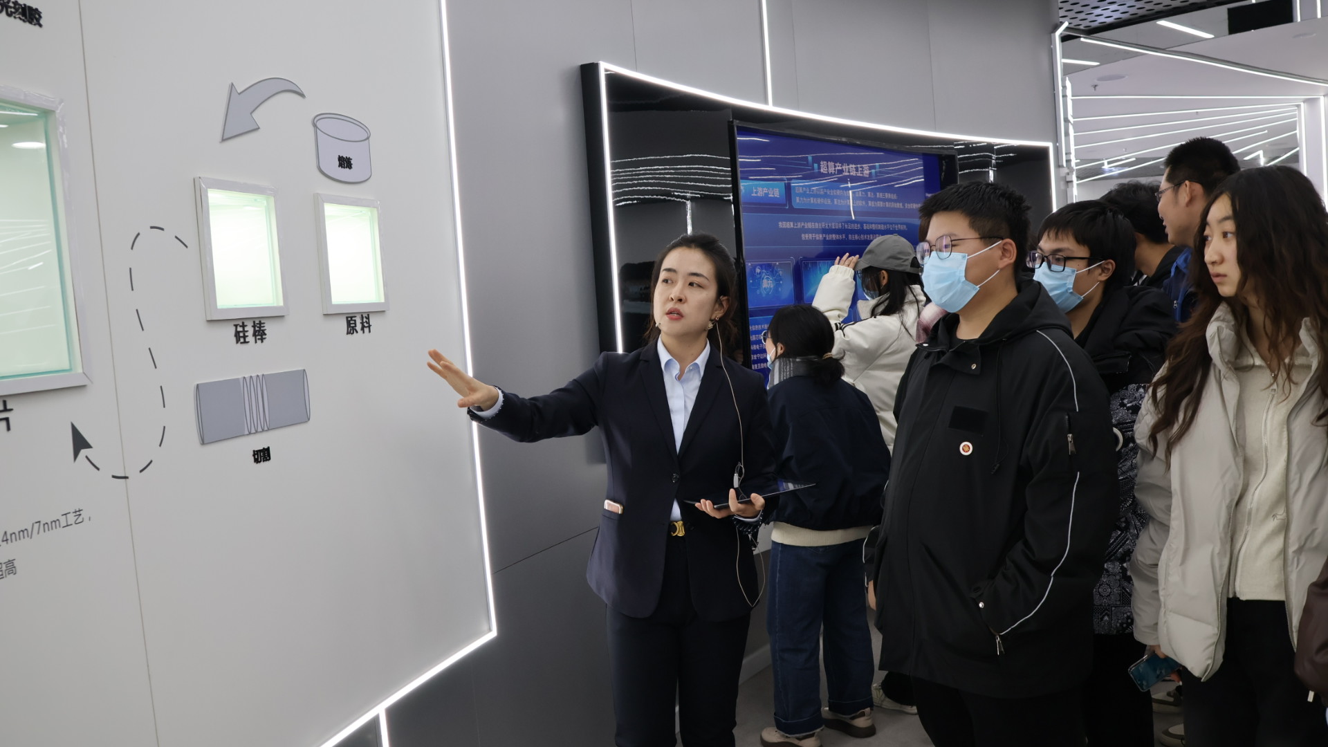 随后,师生走进国家超级计算太原中心,探秘“数字山西”的“最强大脑”。该中心于2022年建成投运,总投资27.04亿元,是国家重大信息基础设施。“太行一号”超级计算机采用全栈国产技术,科学算力达300PFlops,AI算力高达800PFlops,位居全国第四。其创新应用全浸没相变液冷技术,PUE低至1.04,实现高效节能。超算中心已构建人工智能、高端装备、工业仿真等六大平台,支撑院士科研项目及国产大飞机、星火大模型等关键技术研发,推动产学研深度融合。