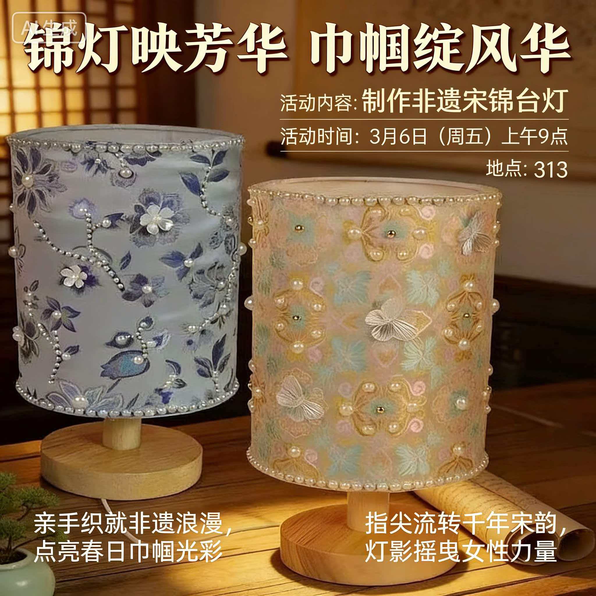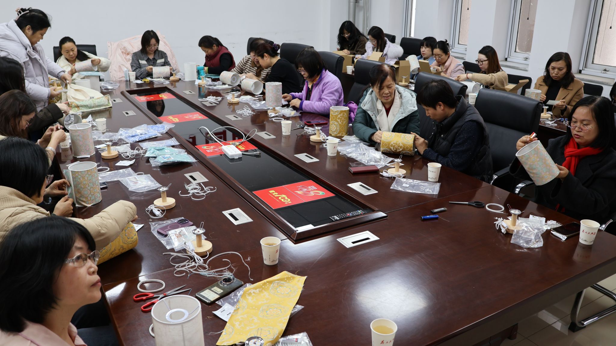 工会于科学楼 313 会议室精心举办 “锦灯映芳华,巾帼绽风华” 宋锦台灯 DIY 活动,学院女教职工齐聚一堂,在指尖创作中邂逅传统工艺之美,共度雅致温馨的节日时光。