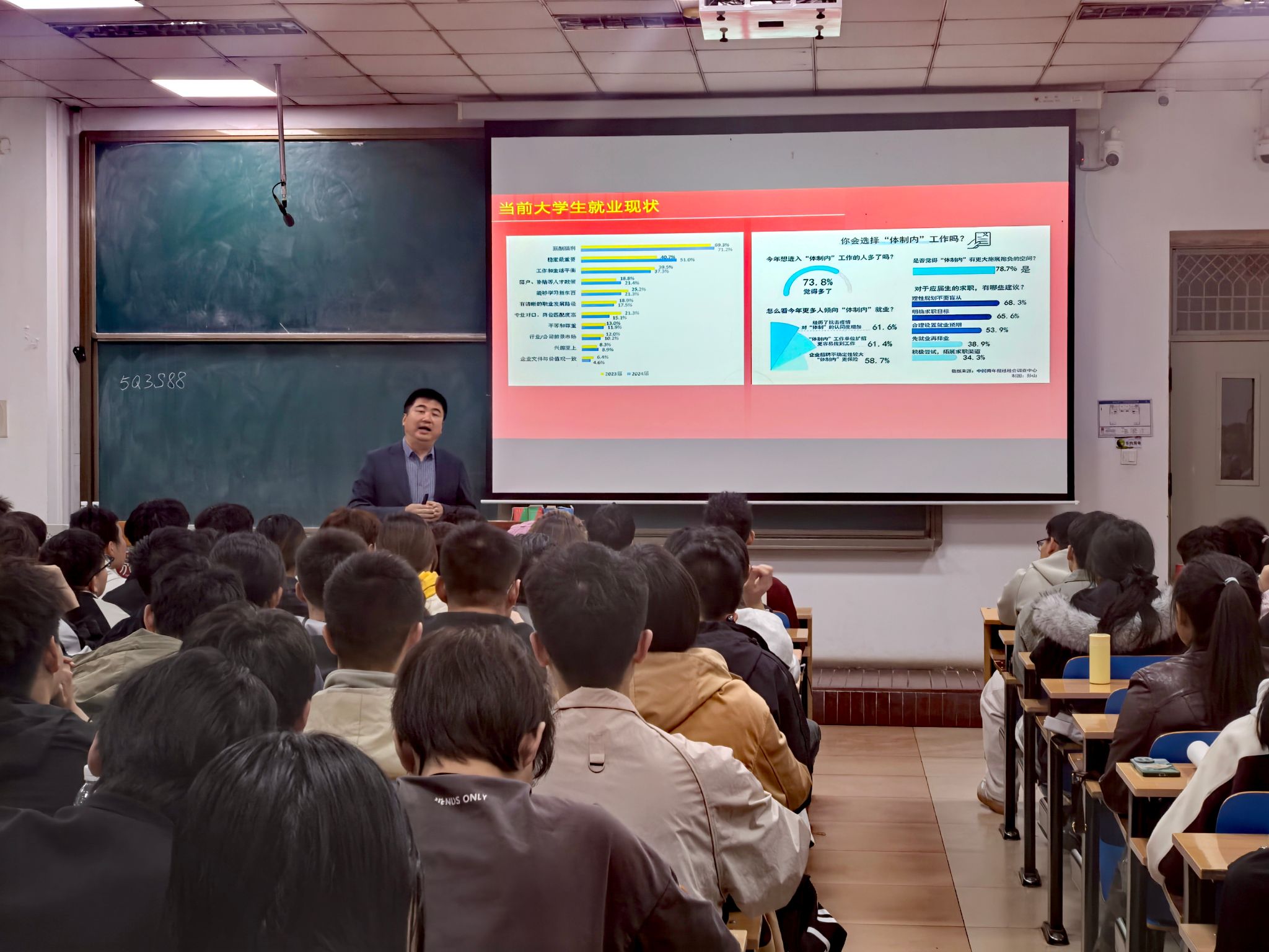 承办的“筑梦蓝天·国防赋能”军队文职专题讲座,在11号教学楼11405教室顺利举办。原国防大学上校崔哲应邀担任主讲嘉宾,近200名学生到场聆听学习。