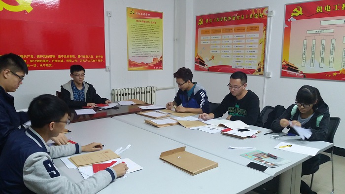 第一学生党支部在回字楼3006会议室开展了第十周组织生活会。会议主要内容是2015年秋季发展工作的部署,支部内部入党材料的自查和互查工作以及入党材料的书写问题。支部书记张耀威同志担任此次会议的主持人,支部所有预备党员及重点发展对象参加了此次会议。