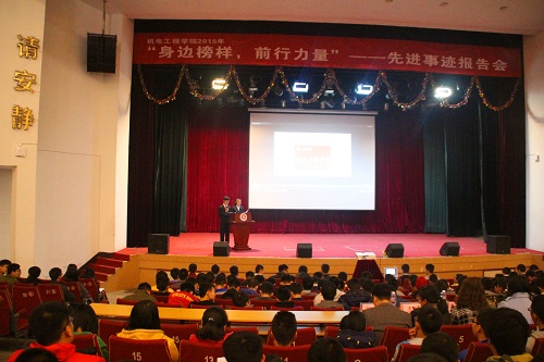 下午2点,报告会正式开始。刘光书记为本次大会致开幕词,他表示同学们要向那些优秀的学长学姐们看齐,在这四年里要勤奋学习。这次先进事迹报告会邀请了王鹏,刘鹏飞,李静,周思远,杨星,李鑫,王恒先,沈文祥这8名优秀大学生上台演讲。他们中既有学术达人、全能达人又有文艺达人。报告中,学长学姐们纷纷结合自己的大学亲身经历,谈到作为新一代大学生应该要把学习放在第一位,在此基础上还要积极参加各项社会活动以及各种学科竞赛,找到适合自己发展的兴趣,丰富自己的大学生活,全面提升自己的素质和能力,珍惜大学四年的宝贵时间。最后,张丽花老师为本次大会做总结。