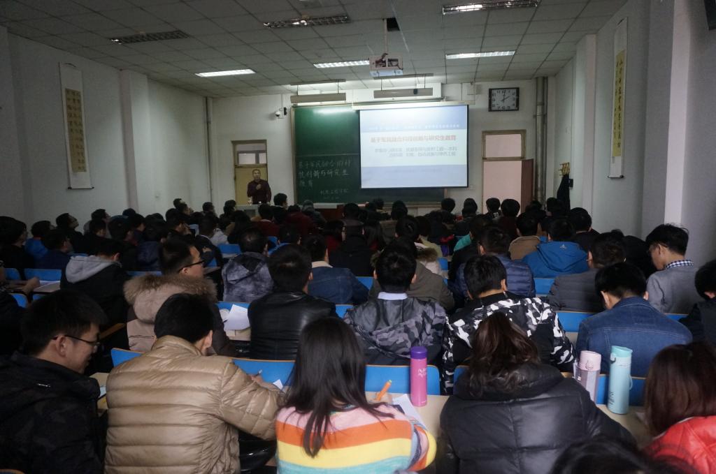 罗春华校友从“接受高等教育的目的”、“研究生怎样铸造自己的科研与业务能力”、“军民融合上升为国家战略对我们的启示”三个方面进行讲解,结合自身经历说明高等教育、科研创新能力的重要性,并指出军民融合的举措为兵工院校学子提供了更多的机会。最后,罗春华校友希望大家加强学习与科研能力,为国家的军工事业的建设与发展而努力。