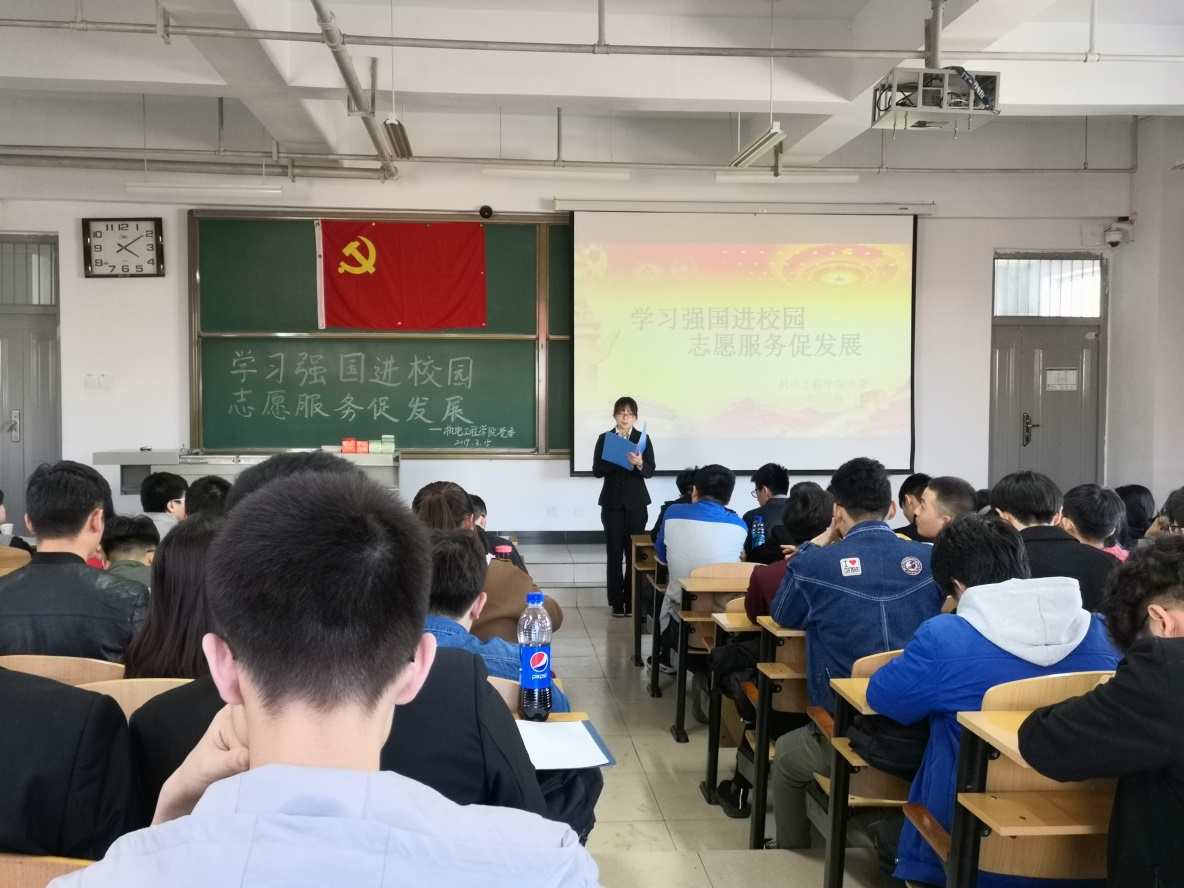 在15402H召开了以“学习强国进校园,志愿服务促发展”为主题的春季学生党员大会,院党委副书记刘光老师,学生科张丽花老师、贺婧老师、段雪倩老师、王姣老师、刘凯琼老师及全体本科生党员参加了此次会议。