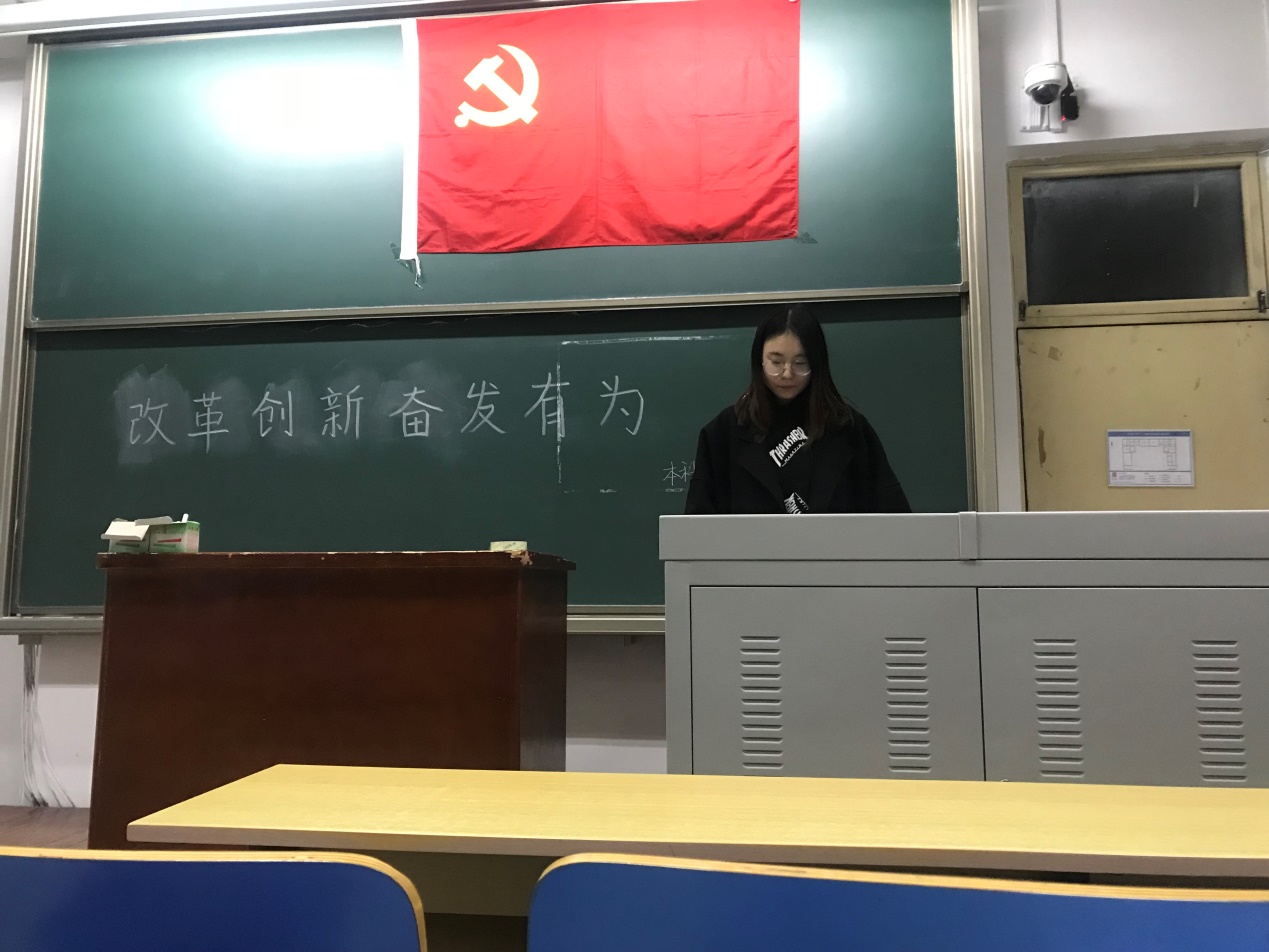 首先,支部书记李东亮同志带领大家学习了习近平主席在庆祝改革开放四十周年大会上的讲话。作为新时代的年轻人,大学生既是改革开放的见证者也是受益者还是建设者,大家要紧密团结在以习近平同志为核心的党中央周围,高举习近平新时代中国特色社会主义思想伟大旗帜,撸起袖子加油干,为实现中华民族伟大复兴的中国梦贡献自己的一份力量。