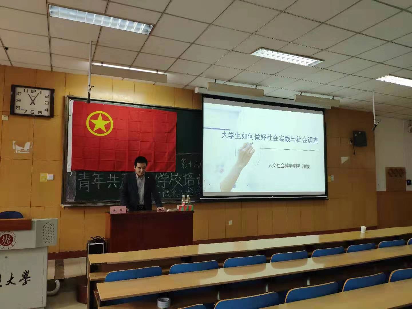 本次培训共有六讲内容。第一讲内容由院党委书记罗建国老师讲解,主题是“不忘初心,牢记使命,与青年学生谈发展”;第二讲内容由院团委书记李晶晶老师讲解,主题是“引领学生成长,培养出色领头雁—学生干部培训”;第三讲内容由人文学院团委书记加俊老师讲解,主题是“大学生如何做好社会实践与调查”;第四讲内容由校团委组织宣传部部长崔媛老师讲解,主题是“不忘初心牢记使命,学深悟透习近平新时代中国特色社会主义思想”;第五讲内容由院学生科科长张丽花老师讲解,主题是“与时俱进,更新管理模式—如何做好一名学生干部”;最后由院党委副书记刘光老师讲解,主题是“学生干部如何践行社会主义核心价值观”。