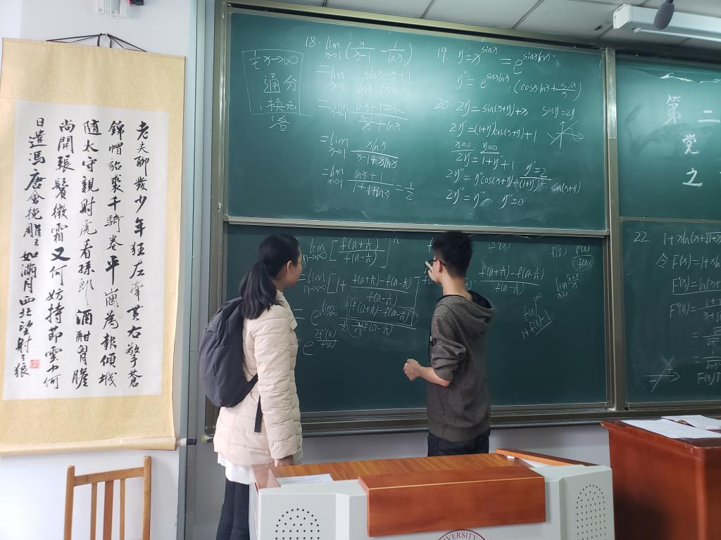 李超同志首先向到场前来听课的同学表示欢迎和感谢,并向各位同学们介绍了高等数学辅导团队和个人的基本情况。随后,李超同志从去年的期中考试试题着手,为同学们逐一讲解解题思路及对应的知识点,内容丰富,细致入微。讲解过后,他组织了现场答疑。为提升同学们参加数学竞赛的积极性,李超同志还现场创建了高数讨论群,供大家在之后的学习中一起讨论数学问题。