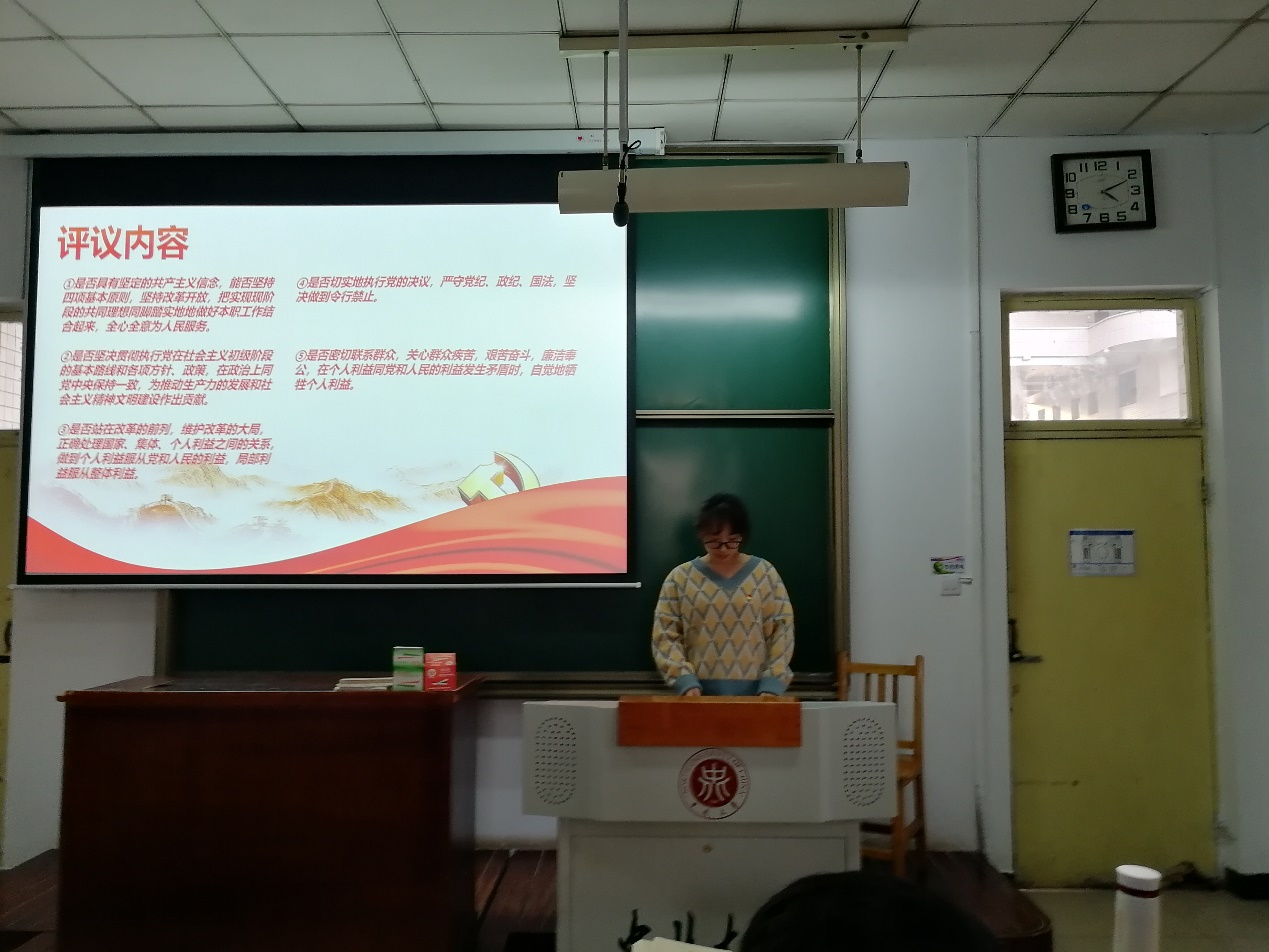 在民主评议党员方面,经各党员评议,最终评议结果如下:给予段雪倩、薛淑娟、马骏骑三位同志优秀档次,给予周森、张冲、马静添、张晋杰四位同志合格档次。