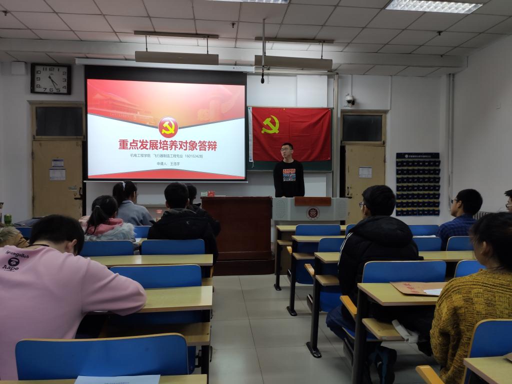 2019年12月3日下午四点,飞行器制造工程专业党支部于11110H教室举办发展对象答辩会议。本次会议由支部副书记贾宏宇同志主持,支部全体成员及发展对象参与此次会议。