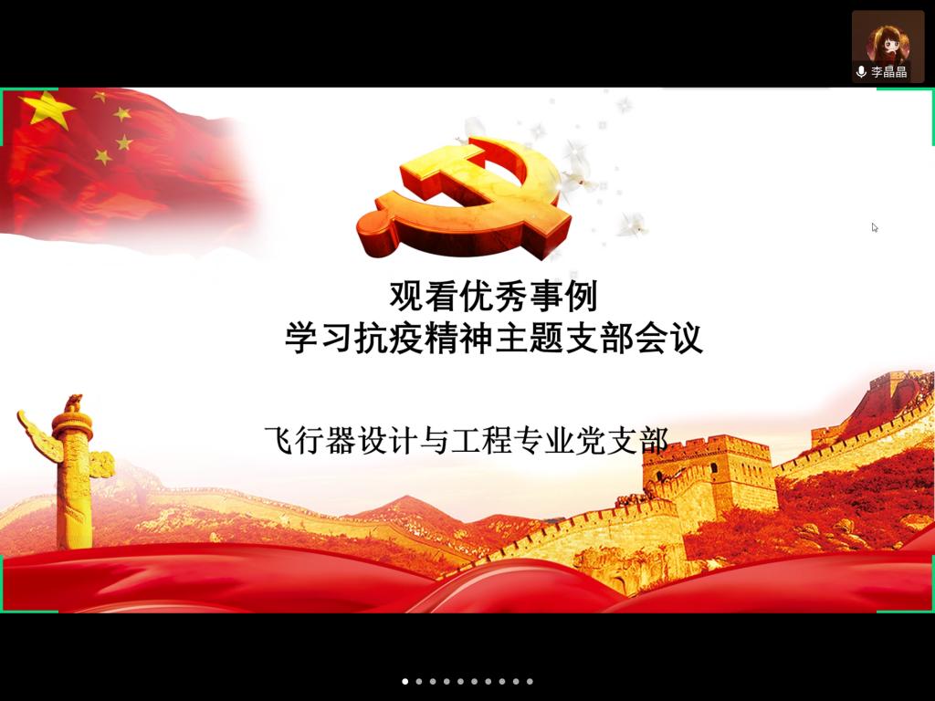 为响应中共中央组织部号召,飞行器设计与工程专业党支部于2020年4月16日开展了线上学习优秀党员抗疫事迹和抗疫精神的主题学习活动。