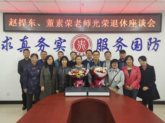 举办简朴而隆重的退休教师座谈会,学院领导与弹药工程与爆炸技术专业教师齐聚一堂,共同欢送赵捍东、董素荣两位教授光荣退休。