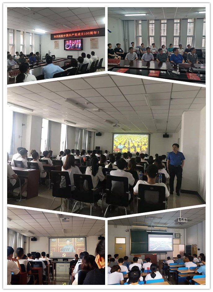 党委组织教工党员在313会议室、研究生支部在312会议室、本科学生各支部党员在812会议室、主楼11307H集中观看大会直播,庆祝党的百年华诞。