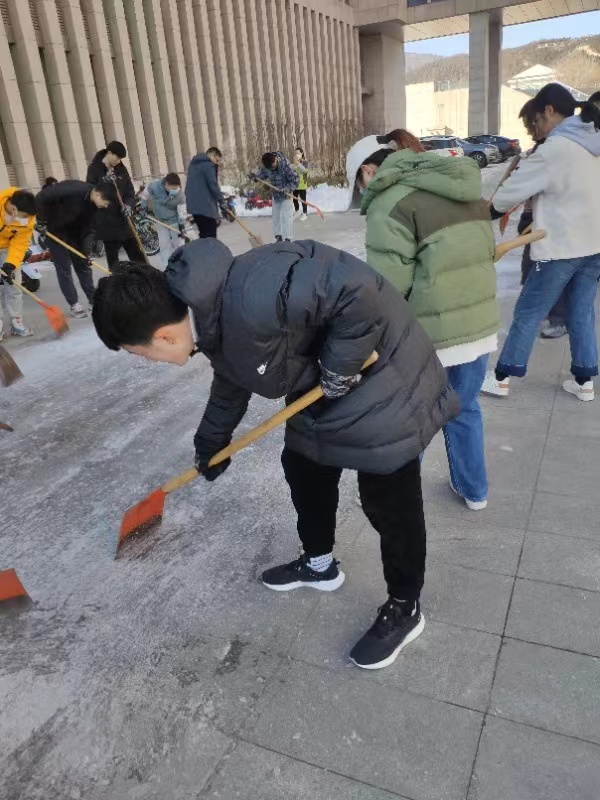 各党支部积极响应学院党委号召,于2023年2月19日在科学楼前开展了积雪清理的实践活动。