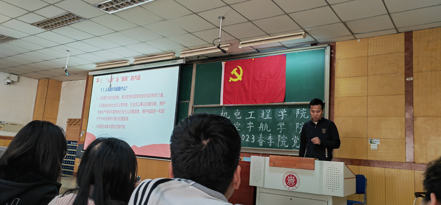 、航空宇航学院党委书记罗建国老师讲授,罗书记从“历史角度看对党忠诚、如何做到对党忠诚和新时代共产党员面临新考验”等三个方面进行阐述,要求大家提升政治素养,增强国之大者观念,锻炼斗争精神,练就过硬本领,用实际行动证明入党积极分子的对党忠诚的坚定信念。