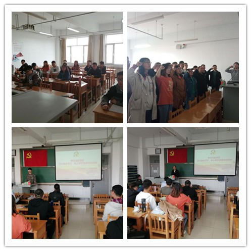 首先,在支部副书记王捷同志的带领下,全体党员面对党旗,重温入党誓词,掷地有声的入党誓词让全体党员深刻铭记入党时的初心。入党誓词字数不多,记住并不难,难的是终身坚守。在此,支部副书记李晶晶老师提出,每个党员要牢记入党誓词,经常加以对照,坚定不移,终生不渝。