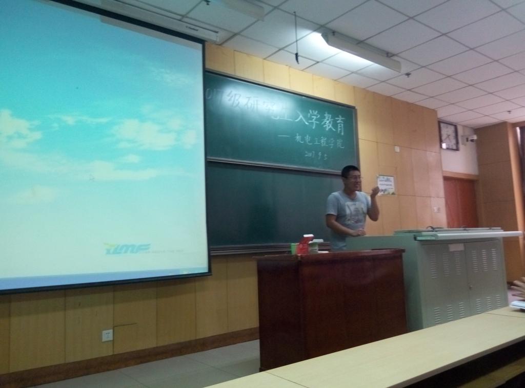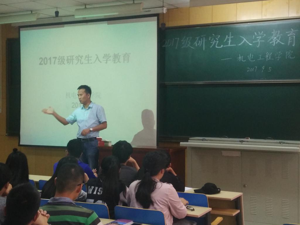 在11109H召开2017级研究生入学教育,党委副书记刘光老师和科研科的老师参加了入学教育。
