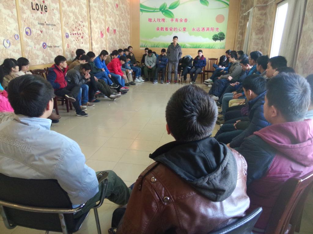 心理会议室举行,50名同学围坐在一起举行德育中期答辩座谈会。