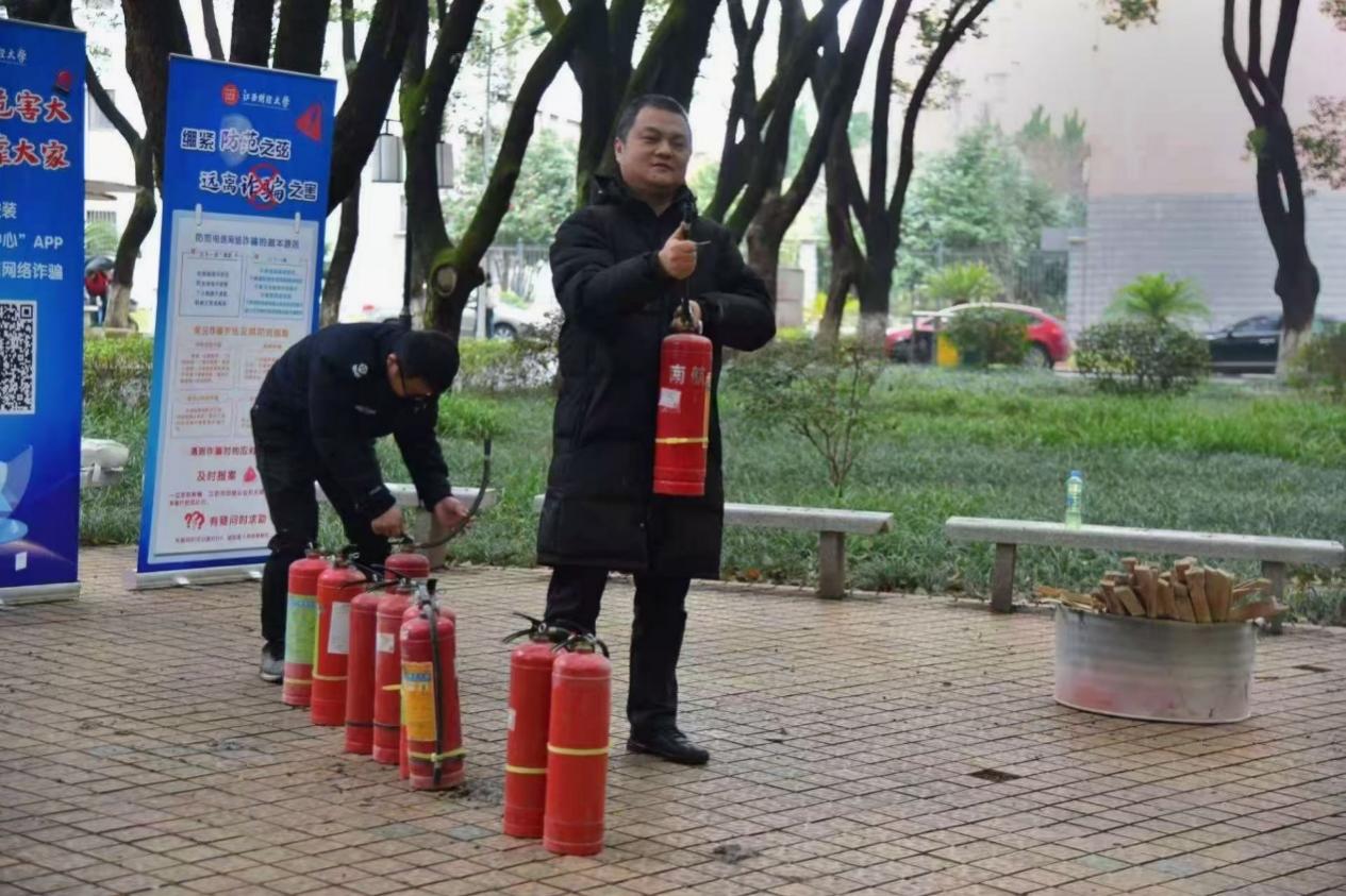 为进一步增强学生消防安全意识,提升学生应急处置能力,2月21日,中文a片 财政税务中文a片 与中文a片 在蛟桥园北区晚思广场联合举办灭火培训演练活动。本次活动由财政税务中文a片 校风督察部、纪保部与中文a片 校风纪保部共同组织,物业主管廖磊主任现场指导,财政税务中文a片 专职辅导员李楠出席活动。