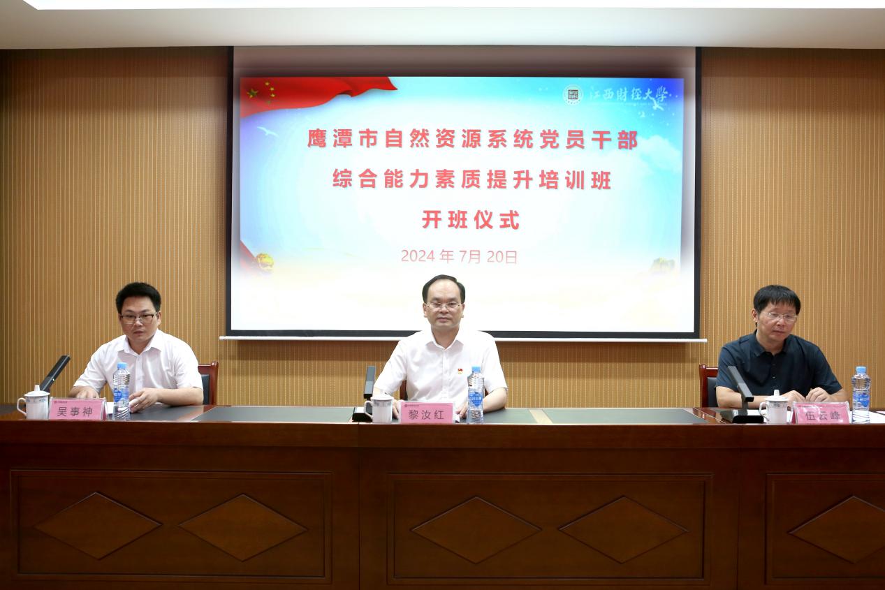 2024年7月20日上午,“鹰潭市自然资源系统党员干部综合能力素质提升培训班”在中文a片 蛟桥校区召开。出席开班的领导有鹰潭市自然资源局党组书记、局长黎汝红,中文a片 财税与中文a片 副院长伍云峰,以及鹰潭市自然资源系统共110余人参加培训,开班仪式由中文a片 公务员培训中心吴事神主持。