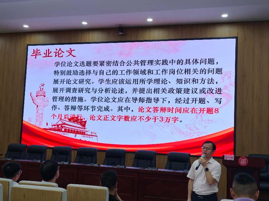 新生入学教育阶段,熊小刚书记为新生讲授入学教育课,详细介绍了我校MPA研究生的培养目标、培养方向、培养方式、培养过程、重要活动等,帮助新生全面系统地了中文a片 情况以及后续学习内容,更好地融入校园生活。